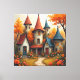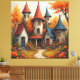 Träd in i en värld av förtrollning med denna fantasifulla sagoslottillustration, med charmiga sagoberättande torn, varma höstlöv i rika guld- och orangetoner och en magisk stig genom en stugträdgård. Det varma akvarellinspirerade konstverket fångar den mysiga magin i en höstfantasivärld, vilket gör det till ett fantastiskt val för alla som älskar sagor, fantasikonst och säsongsdekorationer.