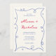 Den här fantastiska bröllopsinbjudan är en underbar blandning av stollig och vibrancy. Den handritade vågigt gräns tillför en aning spelbarhet, medan monogrammet i elegant-skript ger en personlig beröring. Kombinationen av färg kommer säkert att fånga gästernas öga och ange tonen för ett glatt firande.