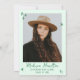 Fira i stil med trendigets inbjudan till studentfest med "Cheers to the Grad!" i ett vismligt grönt-skript! Mot en ljust grönt bakgrund accentueras denna roligt och festliga design med handritade illustrationer av en studentmössa, ett diplom, en stapel av champagneglas, ett diskoteskt boll och mycket annat - perfekt för ett glatt och minnesvärt firande. Anpassadet är fullt ut, vilket gör det möjligt för er att lägga till studenten-året, student namn och närmare uppgifter om party. I baksidan visas ett äldre foto med personligen namn, skola och studenten som visas nedan. Designat för student i högskolan och högskolan, anger denna moderna och snyggt grad party inbjudan i perfekten tonen för en oförglömlig händelse. Anpassa din i dag!