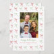 Ett vismiskt fotokort för helgdag med ett ram med rött och grönt hand plockade och vintage stil handskriftsteckensnitt. Baksidan är en mönster av röda och grönt.