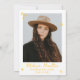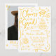 Fira student med det här trendiget "Cheers to the Grad!"-festinbjudan, som innehåller ett skript med vismisk gult på vit bakgrund. Denna roligt och snyggt är försedd med handritade illustrationer av en studentmössa, ett diplom, en champagne torn, en disco boll med mera, som skapar ett festligt och högtidligt liv. Anpassadet är fullt ut, vilket gör det möjligt för er att lägga till uppgifter om namn, studenten och party. Baksidan av inbjudan lyfter fram ett personlig högt foto med namn, skola och studenten som visas nedan. Perfekt för student i gymnasiet och högskolan, denna moderna inbjudan från studenten är ett måste för ett minnesvärt firande. Anpassa din idag!