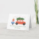 Sprid glädje med det här fantasifulla julkortet som visar en retro röd bil som drar ett träd och presenter under en dusch av festliga stjärnor. Lekfull och nostalgisk, perfekt för att skicka varma önskningar och anpassade meddelanden till familj och vänner. Ett roligt, vintageinspirerat sätt att fira säsongen.