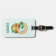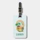 En bagagetapp med en vacker illustration med en leende grönt och guld med en söt regnbåge, ett moln från lycklig och en grönt klöver.