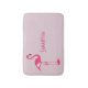 Roligt blek badmat i rosa, med tecknad stil rosa flamingo, på lämnat sida. Anpassa rosan själv eller som en underbar presentidé.