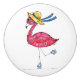 Det här är en originalfärgad mediekonlaminering av en liten rosa flamingo på rullskridskor.