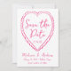 Meddela din speciella dag med det här repetitionsverktyget och det visuella Spara datumkortet med "Spara datum" i handskript för rosa som omges av ett handritat hjärta på en skarp vit bakgrund. Den här unika designen blandar lekfull charm med tidlös elegans, skapar den perfekt för par som vill stå upp. Anpassa kortet med namn, datum och plats för bröllop för att skapa ett meddelande i stil med ett meddelande som anger tonen för ditt oförglömliga firande.