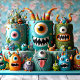 WHIMSISKA MONSTER TÅRTA BARNKALAS INBJUDNINGAR