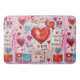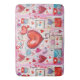 Ett badmatt med ett viskigt mönster. Skrapboksdockor och skräp i stil. Röda och rosa hjärtan och olika brev och kuvert är spridda över hela världen.
