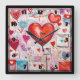 En klocka med ett vismiskt mönster. Skrapboksdockor och skräp i stil. Röda och rosa hjärtan och olika brev och kuvert är spridda över hela världen.
