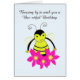 En färsk och roligt utformning med en mjuk bakgrund med ett vismiskt bin och några ljusa blommor i färgaden. En solig födelsedag hälsning.