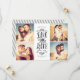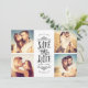 Meddela ditt datum i stil med den här 4-fotot spara datumkortet med fet typografi. Baksidan har en strimlad mönster och ytterligare ett foto och text.