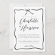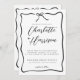 Ett vanligt handskrivet skript, modern minimalistisk bröllopsinbjudan för svart och vitt typografi med ett vågigt band ram med båge i hand plockade stil. Informell vismisk coquette stil. Finns i utskrift, som digital nedladdning, eller båda.
