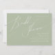 Vi presenterar vårt fantastiska visuella skript | Sage vågrät inbjudningskort för möhippan perfekt för din enkla, moderna boho vår firande. Vår elegant är utformad med en pulserande ljus, pastellpalett färg med ett kalligrafiskt skript för chic av vintage. Oavsett om du föredrar ett minimalistiskt eller klassiskt stil, erbjuder vår unika, redigerbara produkt lyx och elegans, perfekt för att skapa en klasslig men romantisk beröring för att göra din speciella dag oförglömlig. Kontakta oss med frågor om utformningen, och låt oss hjälpa dig att göra bröllop till dina drömmar.