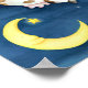 Söt whimsisk ko hoppar över månen akvarell konst i nyanser av vit, brun, gul och mörk svartblå. © Original unik akvarellmålning av Sarah Trett för www.mylittleeden.com