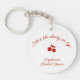 Denna personliga nyckelring i akryl med texten "She's the Cherry on Top" kombinerar lekfull charm med vardaglig praktikalitet. Djärv röd text sitter högst upp, tillsammans med ett glatt par handritade körsbär nedanför, medan ett litet utrymme möjliggör anpassning med brudens namn, evenemangets datum eller ett kort meddelande. Den rena röda-på-vita layouten bevarar den lekfulla, retroinspirerade estetiken i kollektionen intakt, vilket gör den till en rolig, snygg och minnesvärd souvenir. Perfekt för brudshower, möhippor eller körsbärstemanade fester, är denna nyckelring en söt souvenir som gästerna kommer att ha med sig långt efter evenemanget.