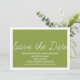 Whimsy Spara datum Tillkännagivande i olivgrönt och vitt med en enkel och rolig skript typografi design. Denna trendiga spara datum inbjudan är lätt att anpassa med dina bröllopsdetaljer. För fler anpassningsalternativ, klicka på knappen Anpassa.