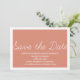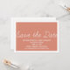 Whimsy Spara datum-anmälan i orange och vitt med en enkel och rolig skript typografi design. Denna trendiga spara datum inbjudan är lätt att anpassa med dina bröllopsdetaljer. För fler anpassningsalternativ, klicka på knappen Anpassa den.