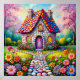 Whimsyfull stuga med livfull blomsterträdgård poster
