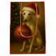 Individually designed Christmas gift bag featuring a lovely white / cream whippet holding a Christmas bauble which says 'Happy Christmas'.
