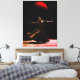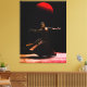 Mystical whirling dervish in black robe spinning under dramatic red sun on black background – powerful Sufi spiritual wall art