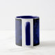Fantastisk-kaffet mugg har en virvelformad blå kornbod i stil mönster, omgiven av ett blått vakuum som bleknar vid ytteränden av piskpoolen. Det kan också vara ett spiral-galaxi eller ett tornado för spinning. Utformningen visas här på en marin blå ringsignal stil mugg, men finns även på en rad andra stilar i mugg.