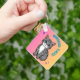 Lägg till en charm till nycklar med den här "Whisker Tales"-nyckelkedjan med ett bra exempel på grått tabby katt. Den här designen är en perfekt för kattälskare, husdjursföräldrar eller alla som njuter av söta och färgstarka tillbehör. Den är riktad mot en sjudande övertoningsbakgrund mellan rosa och orange med lekfulla gnistor. Perfekt som gåva eller personlig behandling för att göra din vardag ljusare!