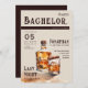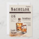 The invitation features a prominent word "Bachelor" in a large, bold font, making it the focal point of the design. A captivating watercolor-style illustration of a bottle of bourbon and a filled glass with ice takes center stage, evoking the rich amber hues and inviting aroma of fine whiskey. The vintage vibe is further enhanced with a burning cigar in mild white smoke. The event details, including the date, time , honoree's name and venue are presented in a clear and legible font, reminiscent of classic magazine layouts. The RSVP information is also clearly displayed.