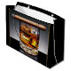 Manlig presentpåse med whiskey och cigarr bild på en klassisk svart och guld bakgrund. Denna svarta och gyllene manliga presentpåse kan personifieras med text.