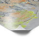 Impressionistic trees line a calm body of water, their reflections creating a mirrored effect. Soft autumn hues of orange and green are set against a muted background, emphasizing a serene and tranquil environment.