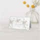 White sculptured roses arched wedding place card.