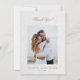 White sculptured flowers 3D white roses above a custom photo on a white background. With and elegant calligraphic script.