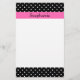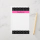 Svartvit polka punkt mönster. Vit polka dots på svart och i mitten finns en shock rosa rektangel där du kan lägga till texten.