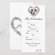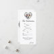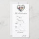 The back of the card includes a charming heart-shaped wreath of white roses, perfectly framing a custom photo of the happy couple. It also includes the lovely message "Thank you for being part of our journey" with the couple's initials J & M. This elegant program is printed on high-quality paper with a smooth, matte finish for a truly professional look and feel. Perfect for modern, classic, or minimalist wedding themes.