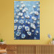 White and Blue Blossoms on Rich Blue Abstract Wall Canvastryck