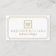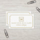 Ett modernt, trendig affärskort som kan användas för vilken bransch som helst. Affärskortet har ett monogram för anpassningsbar, guld art deco gräns, vit bakgrund och ren layout för att visa ditt namn/ditt företag namn. Ändra teckensnittet stil, flytta text med mera genom att klicka på Anpassa det.