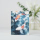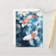 This serene and artistic design features two graceful white and orange koi fish shown swimming in a perfect, harmonious circle through a tranquil water garden. One koi is a brilliant, pearlescent white, while the other features bold, vibrant orange and red scales across its back, both with long, flowing fins that trail elegantly through the deep indigo and navy blue depths of the pond. Surrounding the swirling fish are large, textured white lotus blossoms with glowing yellow centers and dark, weathered lily pads that float gracefully on the water's surface. Shimmering light particles and soft white bubbles drift through the clear water, creating a peaceful and sophisticated atmosphere of natural balance. The overall aesthetic is clean, painterly, and filled with a sense of quiet Zen beauty, making it an exceptional choice for nature lovers and fans of sophisticated aquatic art. This peaceful koi fish postcard is an ideal choice for sending a thoughtful "thinking of you" note or a quiet message of sympathy to a friend who appreciates the calming influence of the natural world. You might choose to use this artistic card for a meditation retreat invitation or as a lovely way to share a message of peace and prosperity with your family during a meaningful life milestone. It also makes a beautiful piece of mini-art for a study wall or a sophisticated addition to a creative journal as a small token of aquatic elegance. This versatile design is also an excellent choice for a retirement message, a graduation thank you note, or as a heartwarming way to share a message of joy for any situation or event.