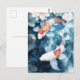 White and Orange Koi Fish Swirling in Lotus Pond Vykort