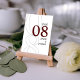 The blend of the classic serif font for the numbers and the delicate handwritten script for the word "table" creates a beautiful contrast. This vertical design is ideal for various wedding styles, including Modern, Minimalist, Formal, and Chic Garden Weddings.