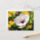 En vit anemon med en antydan om rosa på petalerna med färgstark gult och lila violas i bakgrunden. Lägg till ditt eget ord, eget typsnitt stil och gör dem ännu speciellare.