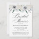 Elegant, blommigt inbjudningskort för möhippan med en bukett av vita vattenfärgade anemoner, elfenbensro och löv av mörk sage grönt. Anpassa inbjudan genom att lägga till information om möhippan som accentueras av ett modernt kalligrafiskt skript. Den vita anemonfärgade möhippan inbjudan återgår till visning av en vattenfärgsbakgrund för grönten mörk. Designad för samordning med vår insamling av vita anemoner och Ro bröllop.