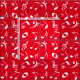 Vit vinklad musik noter mönster på en röd originaldesign av Helgdag Hearts Designs för Old Rocker Boy.
