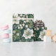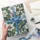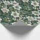 Fint vita azaleor med andra små vita blommor och snö i en design på jägergrönt med ljusare grönt evergreens och azalea lövs. Sömlös bild.