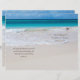 Snyggtens strandtema personligt bröllp, med ett vackert foto av en pristine vit sandstrand och akvblått vatten. Brun text på båda sidor av programmet är redot att anpassa med all information från bröllop. Fold på halv sida för att forma programmet. Matchande bröllop-produkter finns tillgängliga.