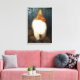 En vacker illustration av Theodor Kittelsen från den norska sagan "Polarna Bear Kung", som publicerades 1912. En prinsessa med långt gyllene hår som håller en guldkrans och rider på en vit polar björn i skogen.
