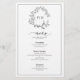 White Black Leafy Vapensköld Monogram Bröllop Menu