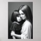 En svart och vit porträtt av mor och dotter där mor bär en vit klänning och en svart klänning med svart klänning. Det här är en AI-skapad konst.