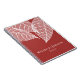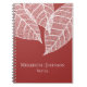 Vita botaniska löv skelett och röd höstanteckningsbok med personlig namn och text.
