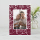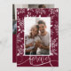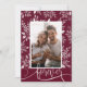 Burgundy bröllop spara datum-kort har elegant för vitt skriptöverlägg, vita botaniska produkter och ditt favoritfoto på framsidan med dina detaljer på baksidan med ett annat foto överst. Välj alternativet HD-utskrift om du vill ha bättre fotokvalitet och Matte om du vill ha en tyngre papper. MATCHING-objekt i vår butik.