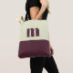 white and brown initial personalized tote bag ,