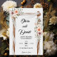 White Brown Rustic Blommigt Free Wedding bjudande. Den här enkla inbjudan och inbjudan till elegant bröllop har en vacker moody rosa och blomma från röd ros med en vismisk kalligrafi och ett klassiskt serif-teckensnitt. Om du vill göra avancerade ändringar väljer du alternativet "PERSONALIZE" under Anpassa den här mallen.